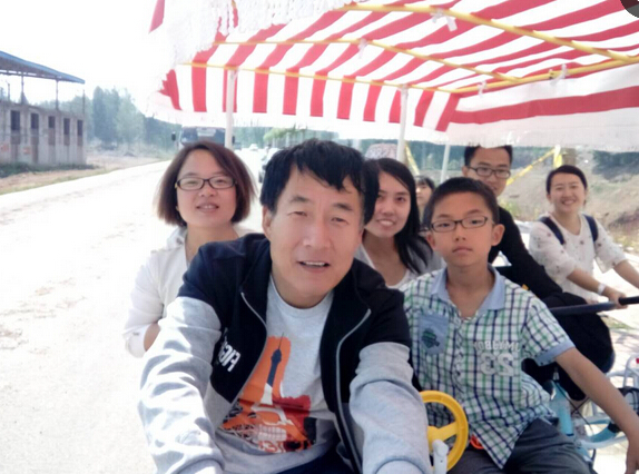 首先大家一同乘車到達丹河濕地公園,在公園的標(biāo)志前合影留念后,自由組合乘坐多人腳踏車:有兩人、三人、四人位置的。大家沿著丹河河岸平坦的道路一路騎行,一路放歌,歡聲笑語不斷。第一站先到達丹河吊橋,吊橋雖然牢固安全,但搖搖晃晃,勾起了許多小孩的好奇心,大家在橋上走走停停甚是新鮮。通過吊橋走到河的對面,是一片薰衣草花海,遠遠望過去像一片紫色的祥云,讓大家賞心悅目,大家迫不及待拿出相機駐足拍照,一個個置身美麗的花海仿佛瞬間變成了花仙子,美麗動人!賞完了花景后大家繼續(xù)騎車到達同事家中品嘗自制的“花涼粉”,“花涼粉”清涼可口,讓大家忘記了外面炙熱的太陽。
